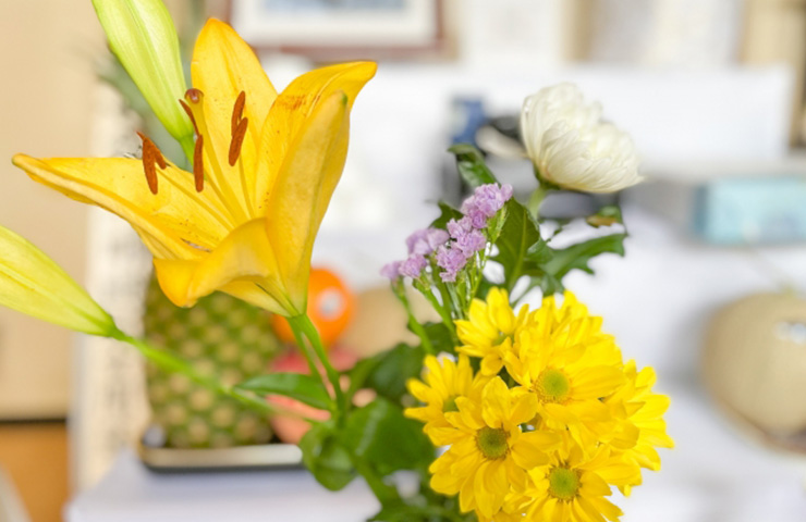 花の本数は、仏教的に縁起がよいとされる奇数(3本・5本・7本)が一般的。左右の花立てに、5本・5本など対称になるように供えましょう。ユリなど花粉の多い花を供える場合は、衣服を汚さないよう、予め花粉を落としておくのがおすすめです。