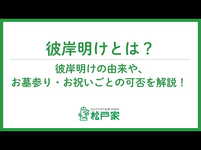 彼岸明けとは、お彼岸期間の最終日を指します。彼岸明けを迎えるまでに「仏壇の掃除」「お墓参り」「法要」を行う人は多いです。毎年忘れがちですが、春分・秋分の日を中日として前後3日間がお彼岸期間です。彼岸明けを迎えるまでに、家族そろってご先祖様の供養をしましょう。季節に応じたお供えものをすることで、ご先祖様もきっと喜ぶに違いありません。
