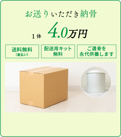 送骨キットをお送りしますので、ご遺骨を、破損や欠損が無いようにしっかりと梱包し、必要書類を同封してうえでゆうパックでお送りください。