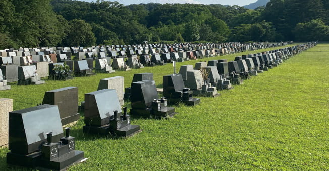 一般的には、芝生墓地と呼ばれる墓地で、墓地の周りを囲む外柵は建てられず、芝生に石碑だけが設置されている墓地です。カロート(納骨室)は予め設置されていますが、その上の墓石は、別途石材店と契約をして設置します。また景観の統一を図るため、墓碑の大きさに制限を設けられています。区画の広さは、4.0㎡となります。