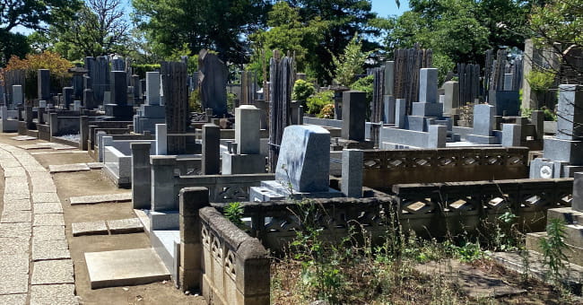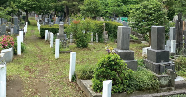 副都心・池袋に近い南池袋の住宅地の中にあり、雑木林のような自然に近い環境を提供しています。小説家や音楽家など文化人が眠る墓所がそこかしこにあり、散策に訪れる人も多い霊園です。開設は明治7年で、面積は10ヘクタール。
