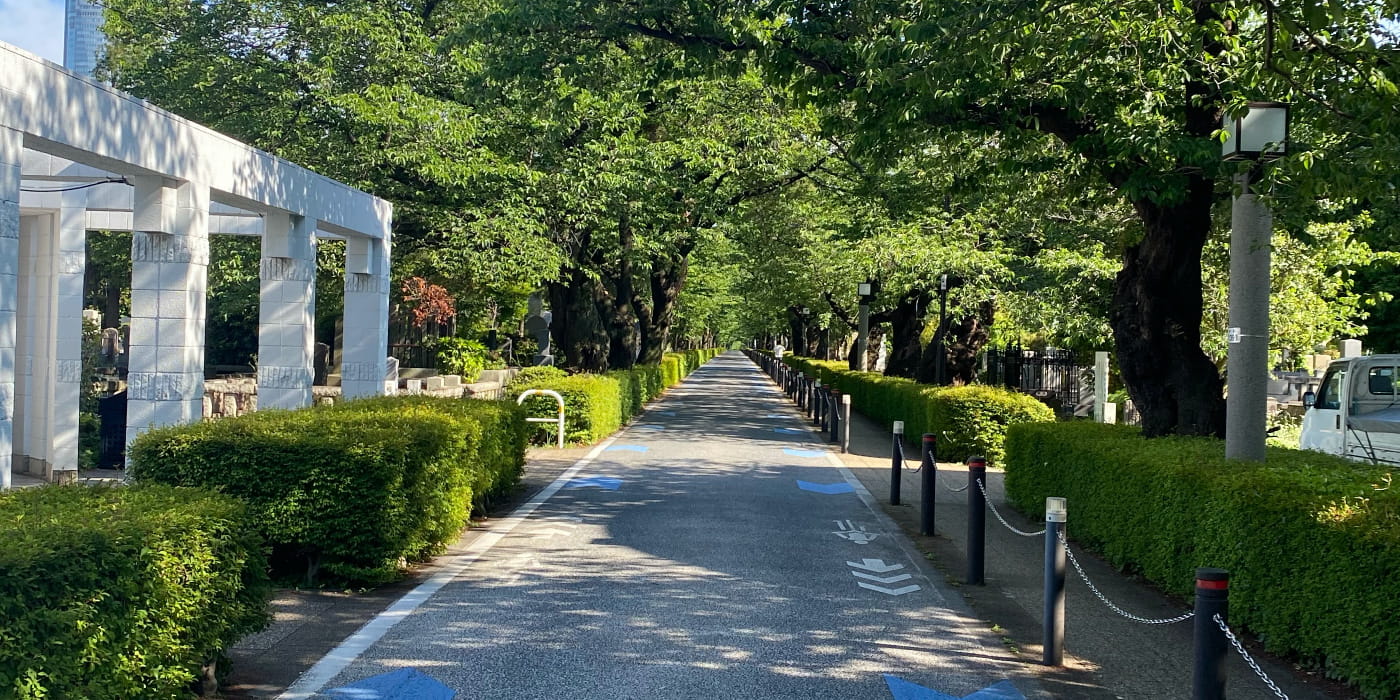 港区南青山のビル街にほど近い地にあり、都心の貴重な緑の空間となっている霊園です。明治以来の個性的な大小様々な墓所や著名人の墓所が数多くあり、外人墓地もあります。墓参者のほか、歴史の勉強や散策に訪れる人も大勢います。開設は明治7年で、面積は約26ヘクタール。
