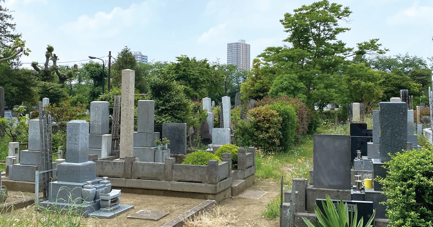 都立霊園の中で最も規模が小さく、桜の古木が点在する中に、歴史を感じさせる墓地があります。著名な芸術家や文学者の墓地があります。霊園の西側には本妙寺や慈眼寺などの寺があり、広大な岩崎家の墓所に隣接していることから静寂な地となっています。開設は明治7年で、面積は約7ヘクタール。