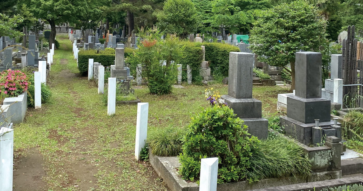 副都心・池袋に近い南池袋の住宅地の中にあり、雑木林のような自然に近い環境を提供しています。小説家や音楽家など文化人が眠る墓所がそこかしこにあり、散策に訪れる人も多い霊園です。開設は明治7年で、面積は10ヘクタール。